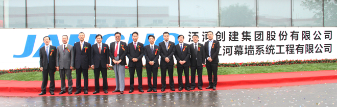 2013年5月28日,北京江河幕墻股份有限公司正式更名為江河創建集團股份有限公司(簡稱“江河創建”)揭牌儀式暨子公司北京江河幕墻系統工程有限公司(簡稱“江河幕墻”)設立儀式在北京隆重舉行。江河創建董事長劉載望攜子公司江河幕墻董事長兼總裁祁宏偉、北京港源建筑裝飾工程有限公司(簡稱“港源裝飾”)董事長王波、承達集團有限公司(簡稱“承達裝飾”)執行董事馬振宇及集團總部高管、員工代表參加了揭牌儀式,中國建筑金屬結構協會會長姚兵及鋁門窗幕墻委員會副主任劉萬奇、中國建筑裝飾協會名譽會長馬挺貴應邀出席儀式,儀式由江河創建常務副總裁許興利主持。